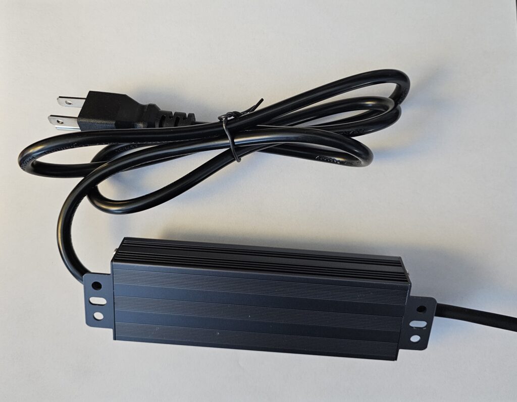 24V 60W Waterproof 5-foot long grounded extension cord with adapter.